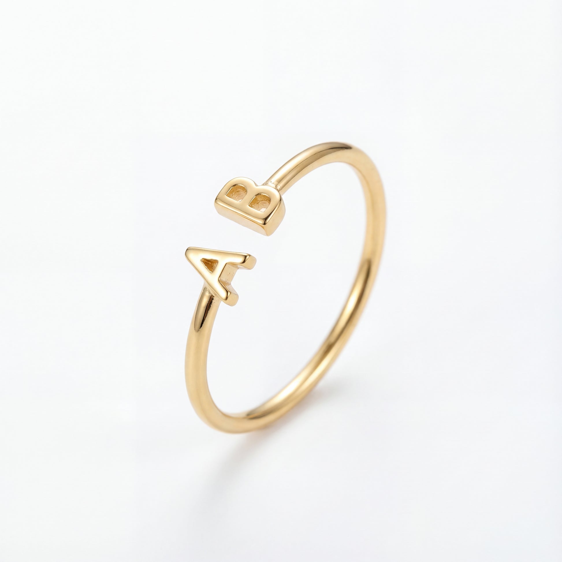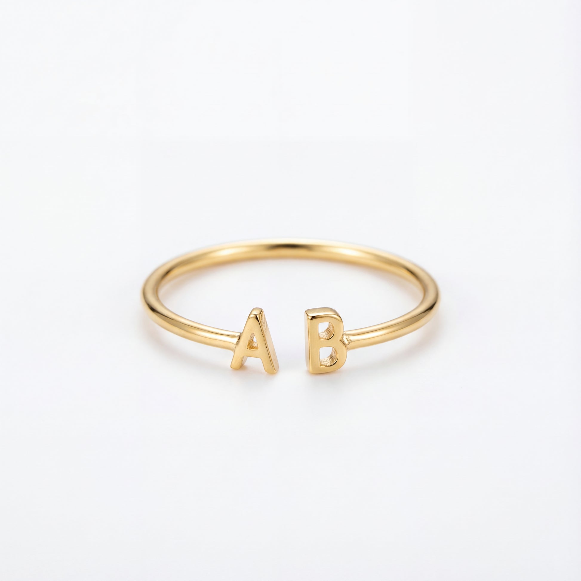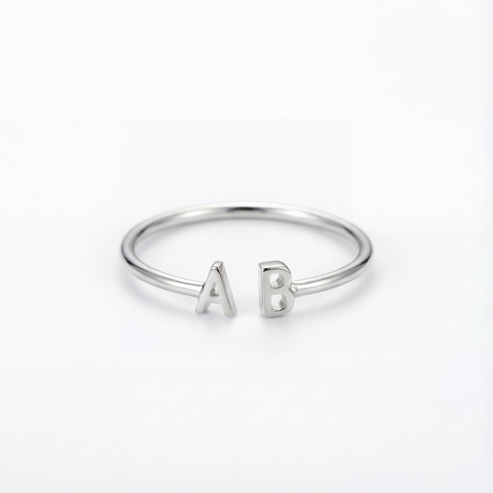 Questo elegante anello aperto presenta due motivi con iniziali alle estremità opposte, creando un pezzo personalizzato unico. La finitura spazzolata liscia aggiunge una sofisticazione moderna.