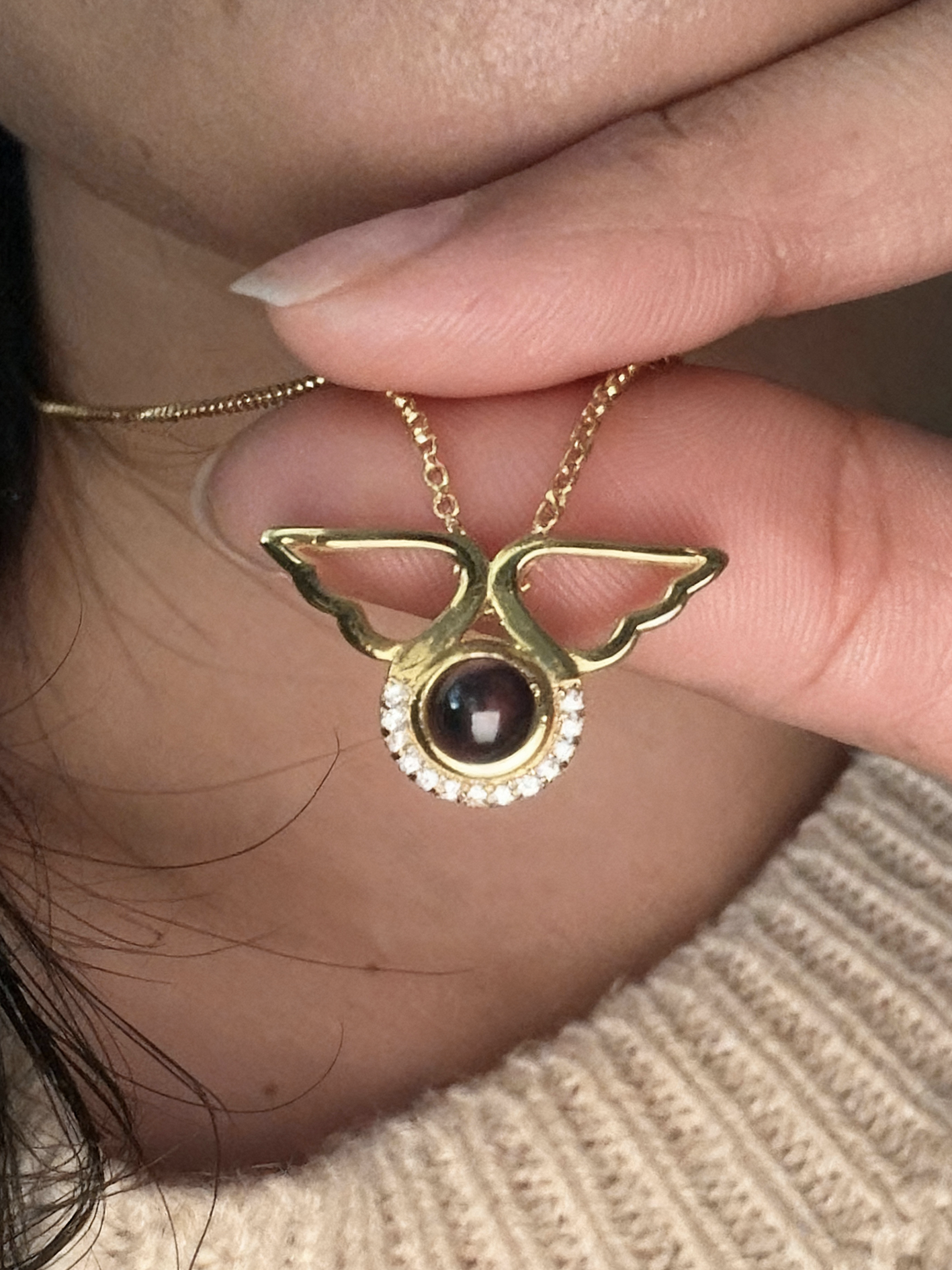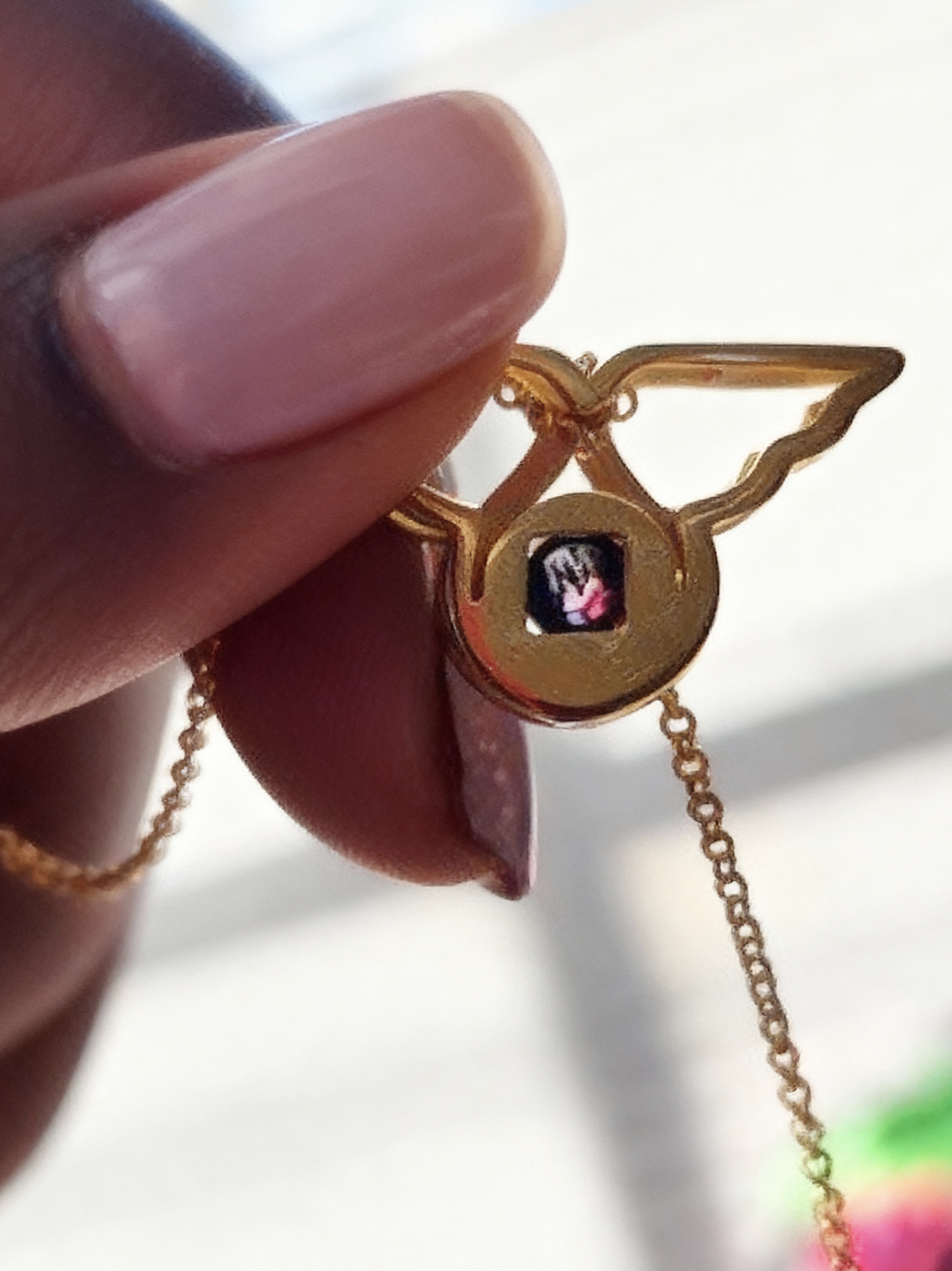 Una foto segreta, rivelata dalla luce. La nostra Collana Proiezione trasforma il tuo ricordo preferito in arte da indossare. Il pendente elegante nasconde un'immagine personalizzata che si proietta quando retroilluminata: un ritratto, un momento, una storia d'amore.