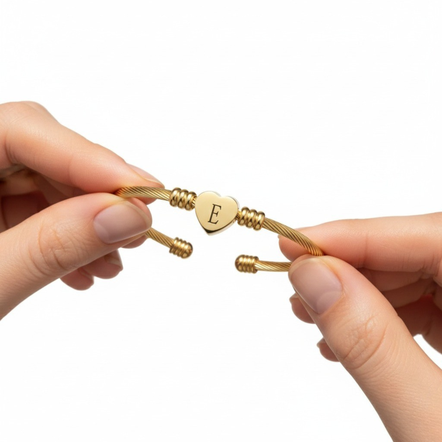 Esprimi il tuo stile con eleganza grazie a questo raffinato bracciale con un'iniziale incisa su un cuore in acciaio inox.