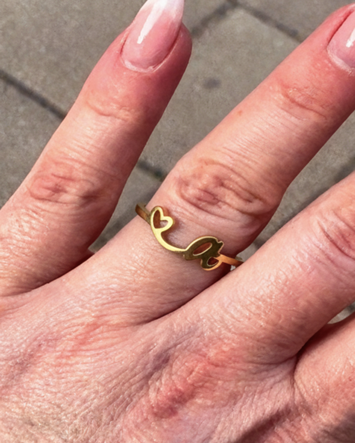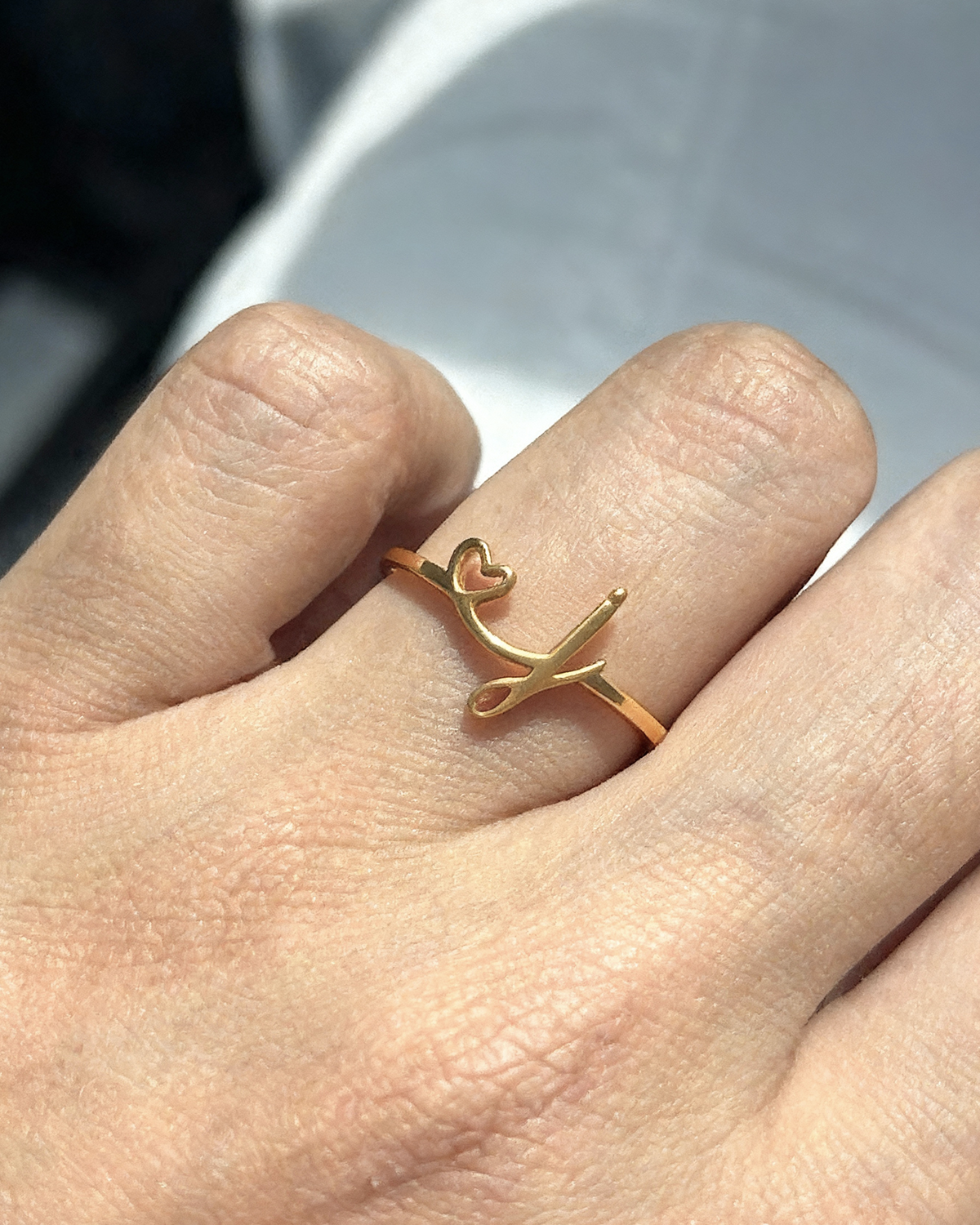 Questo anello delicatamente regolabile mette in risalto un'elegante iniziale, accentuata da un piccolo cuore aperto. Un modo sottile ma significativo per mostrare una lettera che conta, sia che sia la tua o quella di una persona cara. Disponibile in oro o argento, si adatta a tutti gli stili e a ogni mano.
