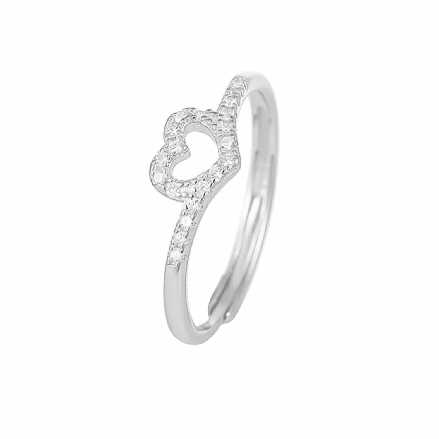 Un semplice cuore, un simbolo potente. Questo elegante anello presenta un cuore delicatamente traforato, impreziosito da cristalli scintillanti che catturano dolcemente la luce. Minimalista e significativo, incarna l'amore nella sua forma più pura e vera.